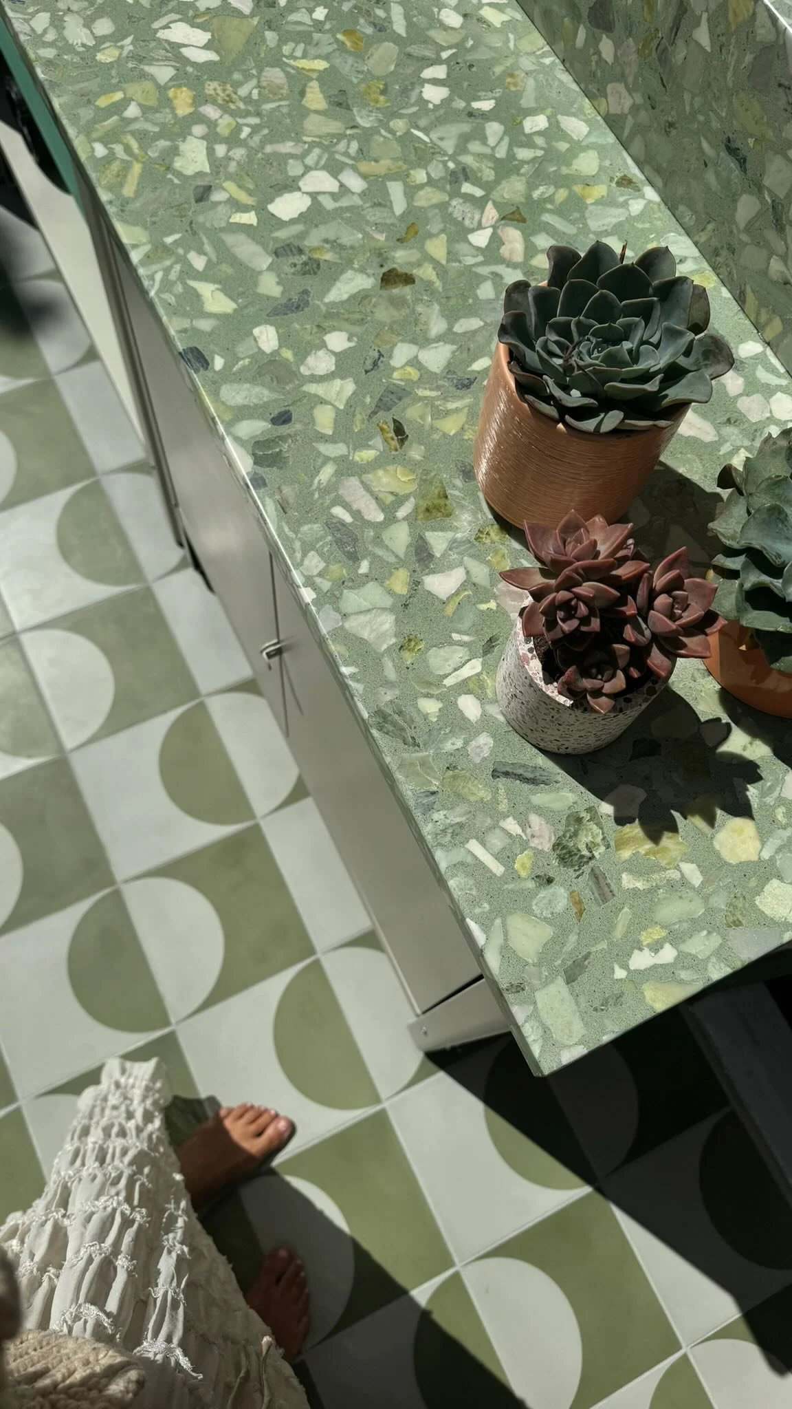 sometimes you need tile in a snap. shop our in stock terrazzo tiles, cement tiles, concrete tiles, and rivi tabletops that are ready to ship.